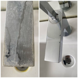 Atliekant butų ir namų valymus, mes valome ne tik dulkes nuo paviršių, bet taip pat išvalome skalbimo mašinos gumas ir stalčiukus, kurie būna pasidengę pelėsiu, kalkėmis ir rūdimis. Ant gumų kaupiasi šviesios ir tamsios dėmės. Šviesios dėmės tai kalkės, o tamsios – pelėsis. Patirtis rodo, kad valymo priemones reikia naudoti pagal jų paskirtį. Jeigu ant gumų bus pelėsis, valant chemija, kuri skirta šalinti kalkes ir rūdys, jums pelėsio išvalyti nepavyks. Kalkių ir rūdžių šalinimui naudojami stipresnės koncentracijos rūgštiniai valikliai, kurie turi pH2. Viena iš pasiteisinusių priemonių yra Amecidas. Pelėsio valymui nuo gumų naudojame pelėsio valiklį (Pufas, Cillit Bang Black Mould). Taip pat patirtis rodo, kad ne visus paviršius pavyksta išvalyti iš pirmo karto. Labiau užterštiems paviršiams reikia valymą pakartoti. Norint, kad vargo būtų mažiau, rekomenduojama po kiekvieno skalbimo stalčiukus ir gumas valyti sausa šluoste ir palikti stalčiuką ir dureles pravėrus.
